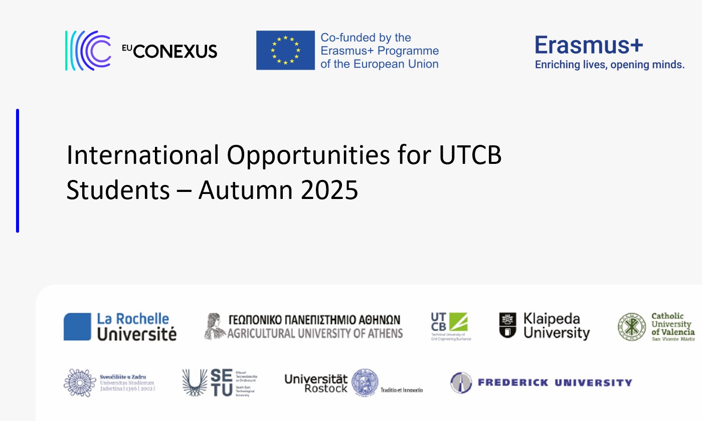 Oportunități internaționale pentru studenții UTCB – Toamna 2025